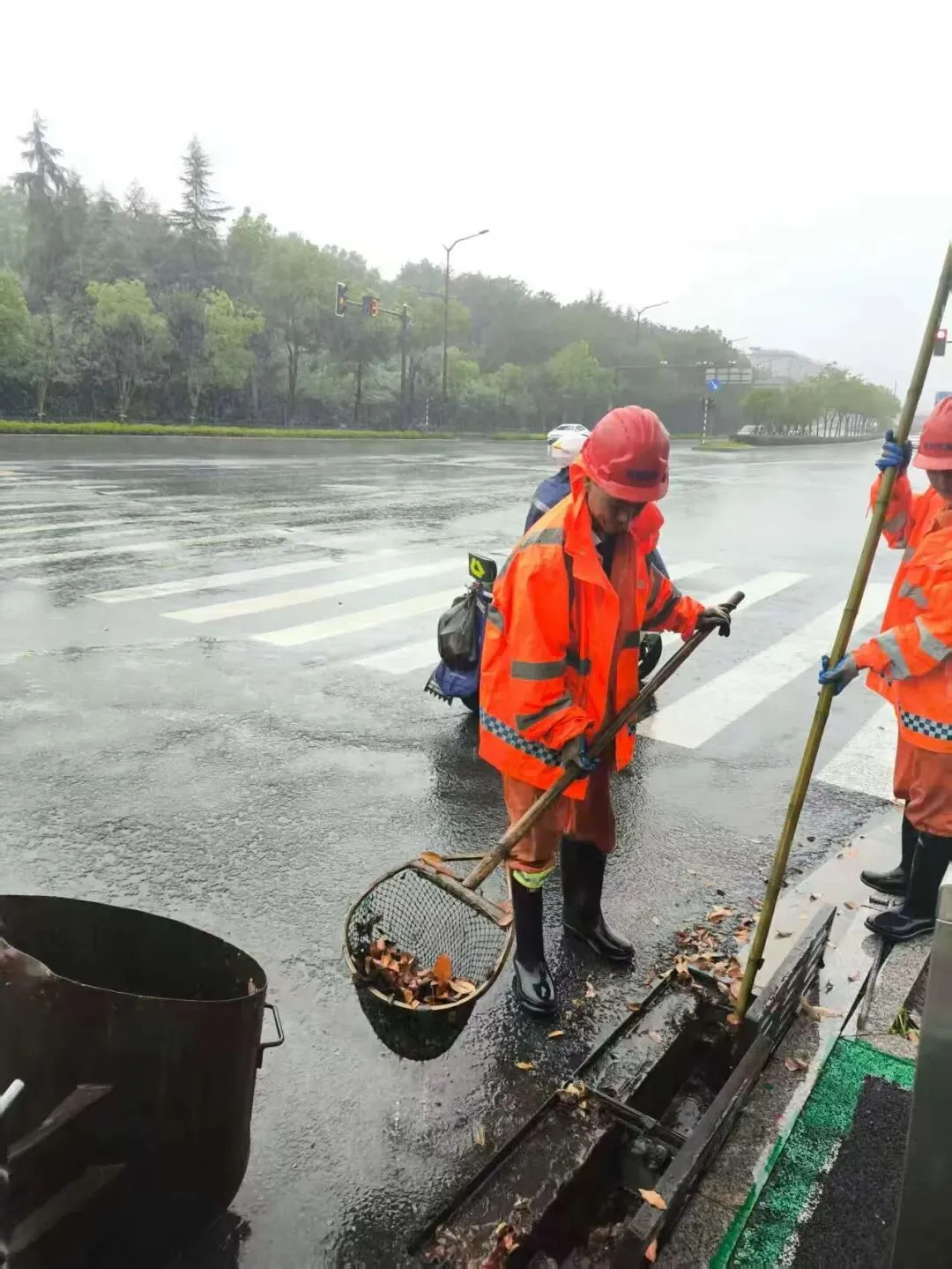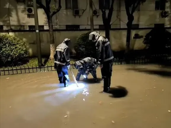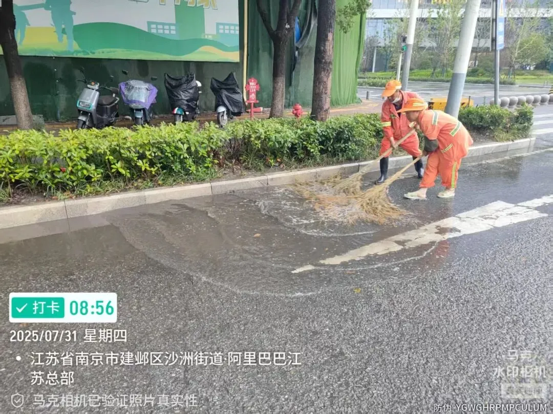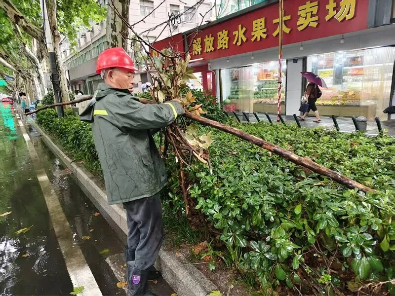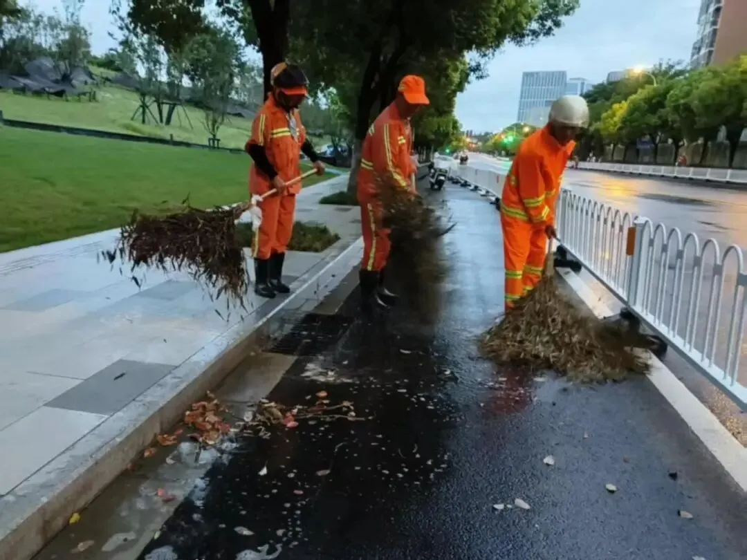 六合区城管执法队员深入沿街商铺,督促加固或更新隐患广告牌,严防高空坠物、倾倒等。针对主城区长江路、泰山路、延安路、园林路等重点路段,保洁人员加大巡查力度,采取推水作业与清掏杂物同步进行的方式,及时清除落叶、垃圾及淤泥,避免排水口堵塞,最大限度提升排水效率。