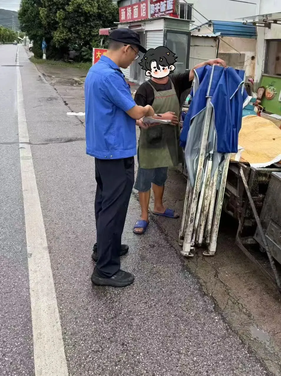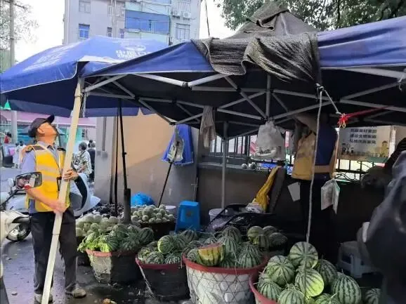 加强户外广告设施巡查,加固摊点群围挡、雨棚支架,避免倾倒风险。