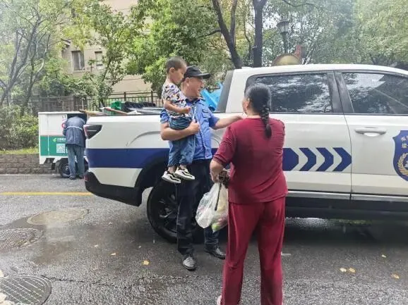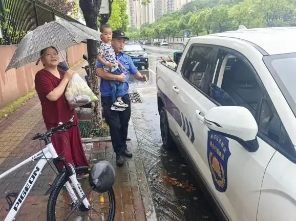 7月31日上午,沿江街道城管队员在巡查兰山路时,发现一名老年人带着小朋友站在路边,此时小朋友衣服已被淋湿,队员立即上前询问,得知老人带孙子出来买菜,因突降大雨,两人身上被淋透,但此地离家还有很长一段路。队员立即开车护送,及时护送他们回家。