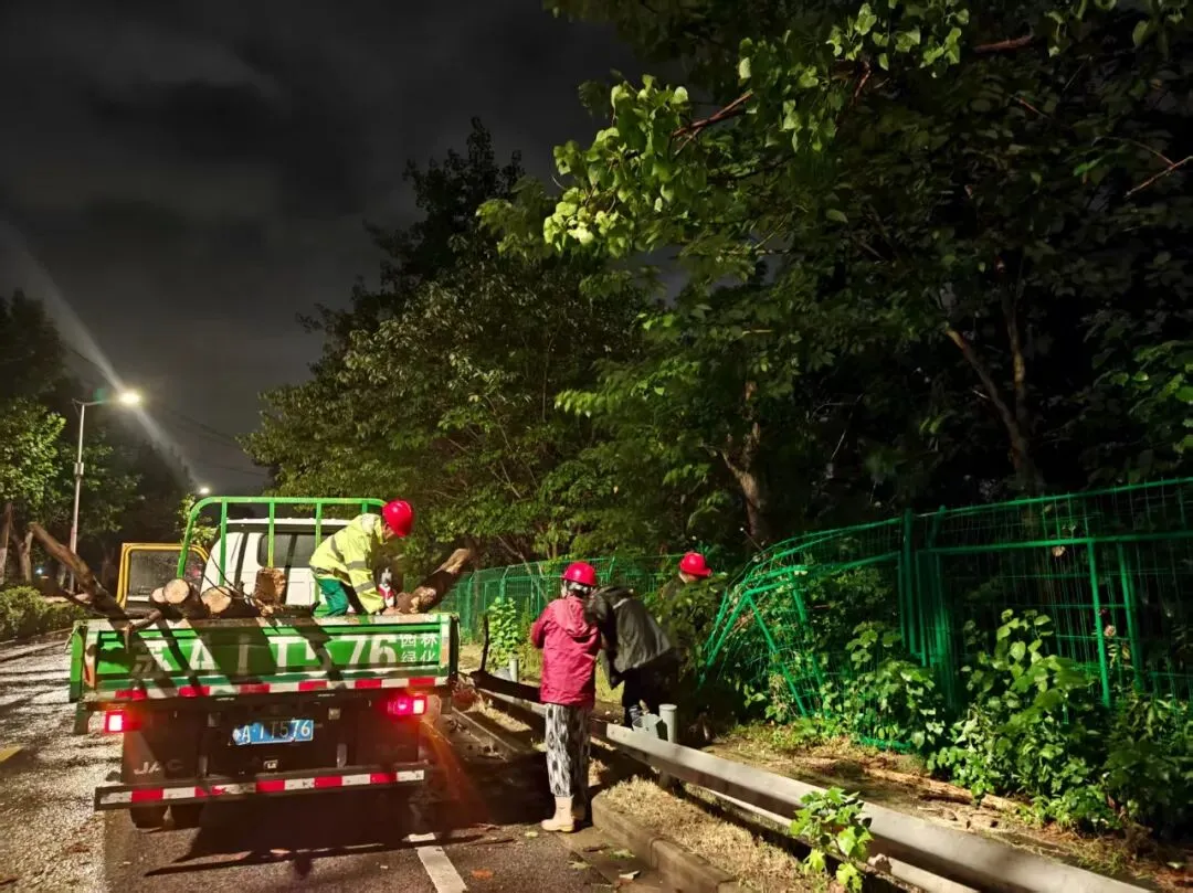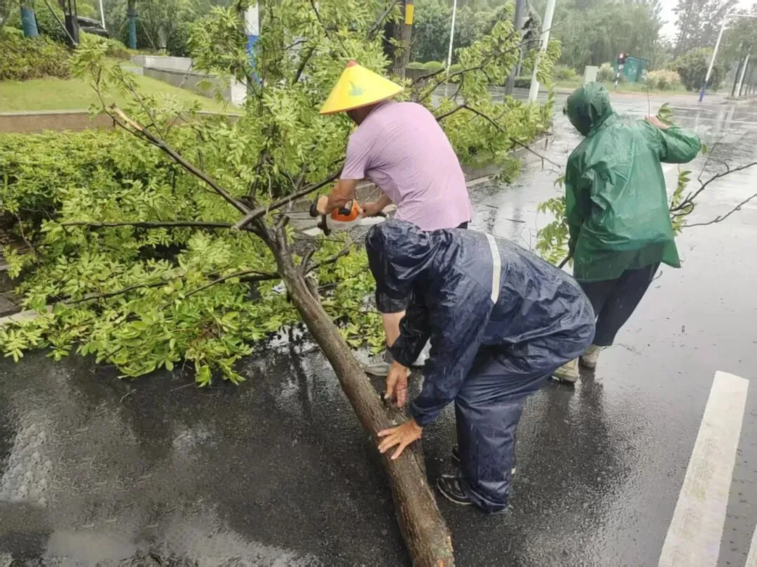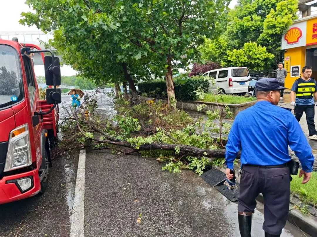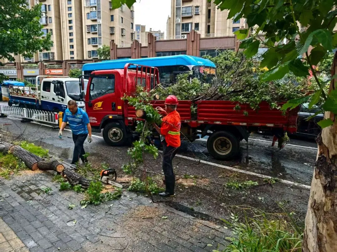 浦口区综合行政执法局共出动人员1267人次,对区内道路开展详细巡查,提前加固树木、清理雨水箅子、巡查户外广告设施,并及时处理树木断裂、围挡倒伏等安全隐患。