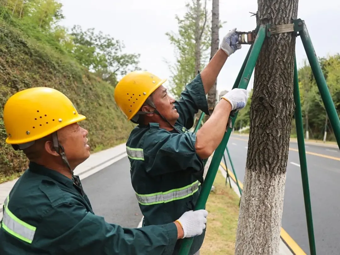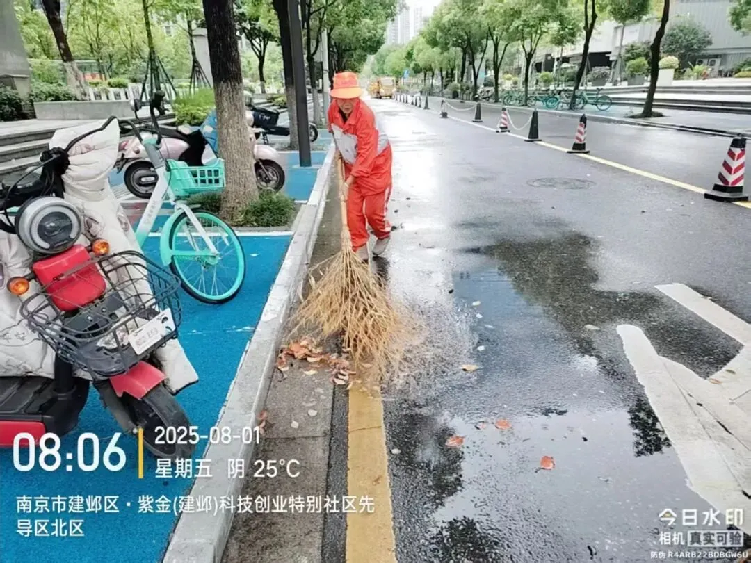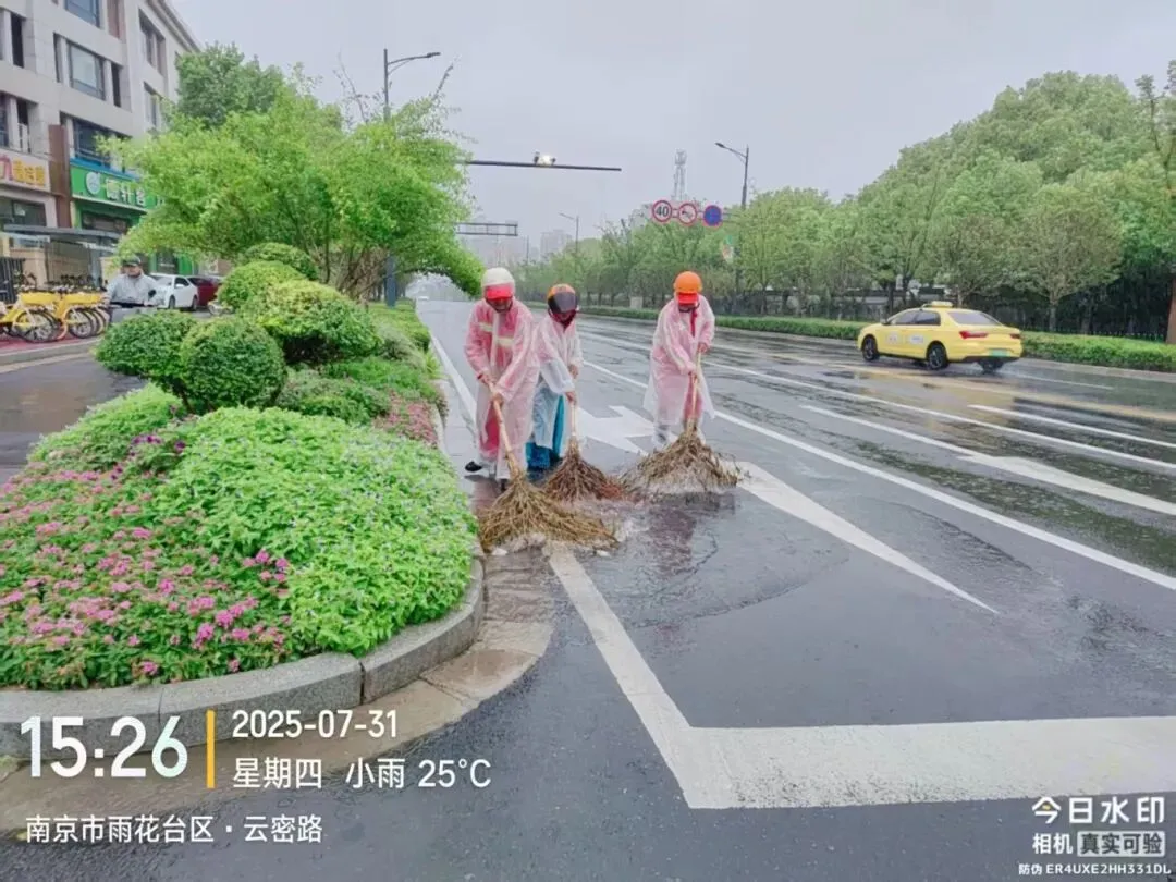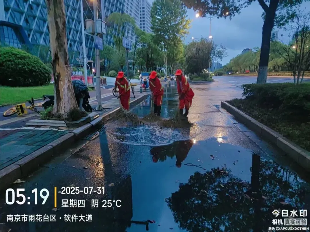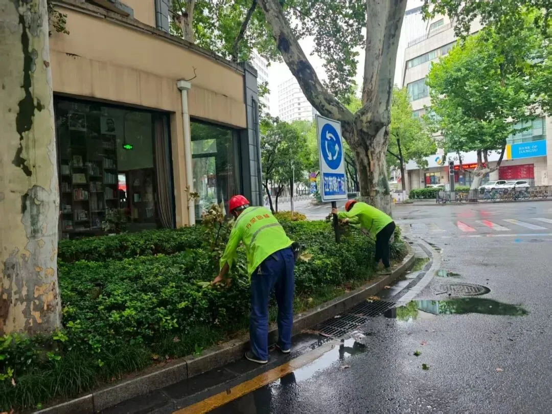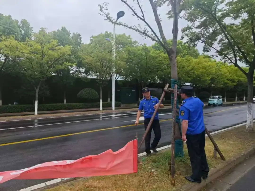 为扎实做好风雨天气防范应对工作,江宁城管迅速启动应急预案,全面排查重点区域隐患,对排水系统、广告牌、围挡等设施进行检查整改,加固树木、清理雨水口杂物,保障排水。