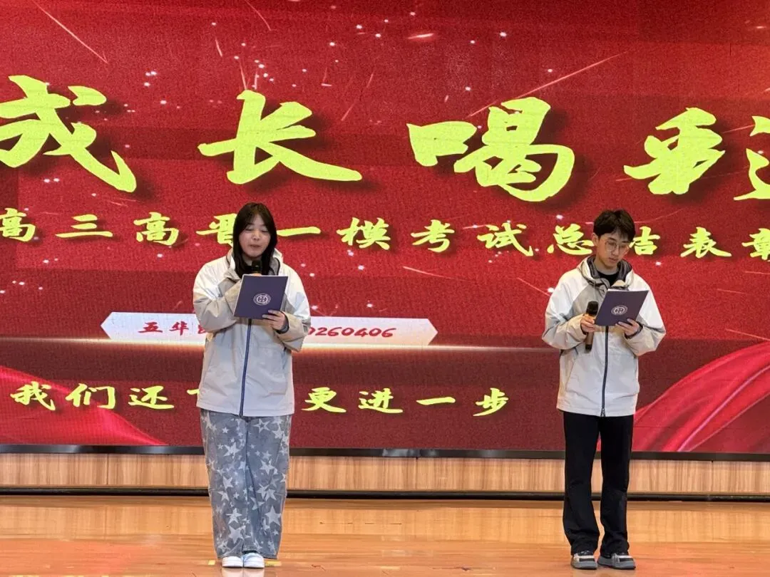 暮春时节,草木葳蕤,书声琅琅的校园里,奋斗的气息愈发浓烈。4月6日上午,我校2026届高三一模表彰大会在先锋剧场隆重举行,全体高三师生齐聚一堂,共同见证这一荣耀时刻,为冲刺高考凝聚磅礴力。
