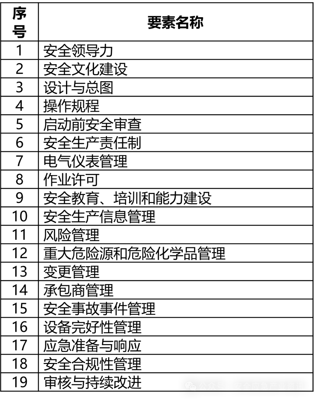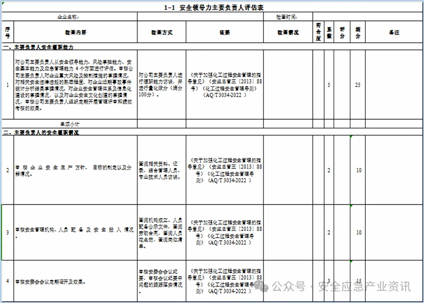 审核清单:依据《化工企业过程安全管理导则》,结合《企业安全标准化基本规范》、《危险化学品企业安全风险隐患排查治理导则》等规范要求,制定出对应每个安全管理要素的审核要点清单,做为安全审计的参考依据。