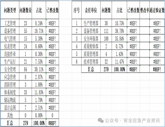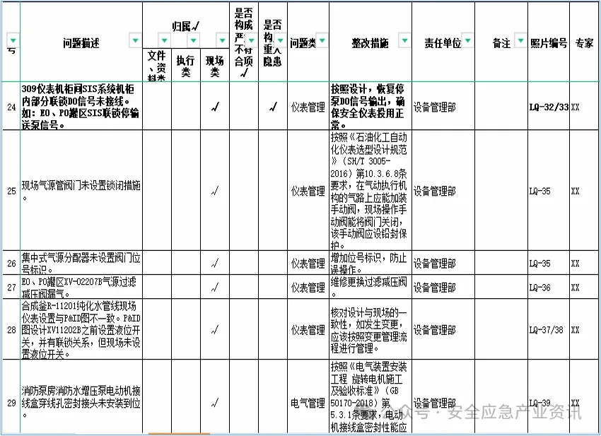 通过工艺、设备、安全等专业的现场审计,明确各项问题的责任部门及专业类型。