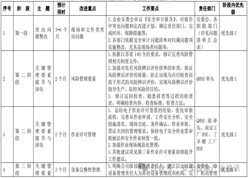 根据审计的结果,制定出企业各管理要素持续改进的具体行动方案和整体的安全管理提升建议。