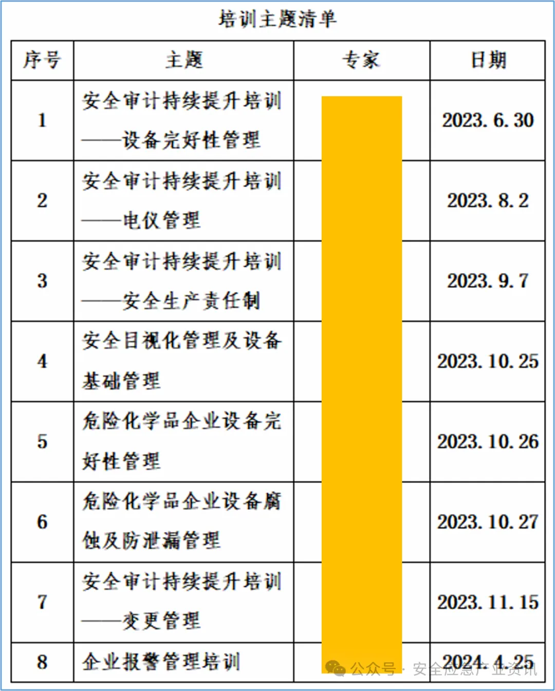 为巩固第一期化工(危化品)企业安全审计的成效,帮扶企业解决和整改重点、难点问题,在新区应急局的统一组织和部署下,我司制定了针对性的培训计划并安排要素审计的专家负责培训,保证审计工作的延续性和培训效果。培训内容重点包括以下方面: