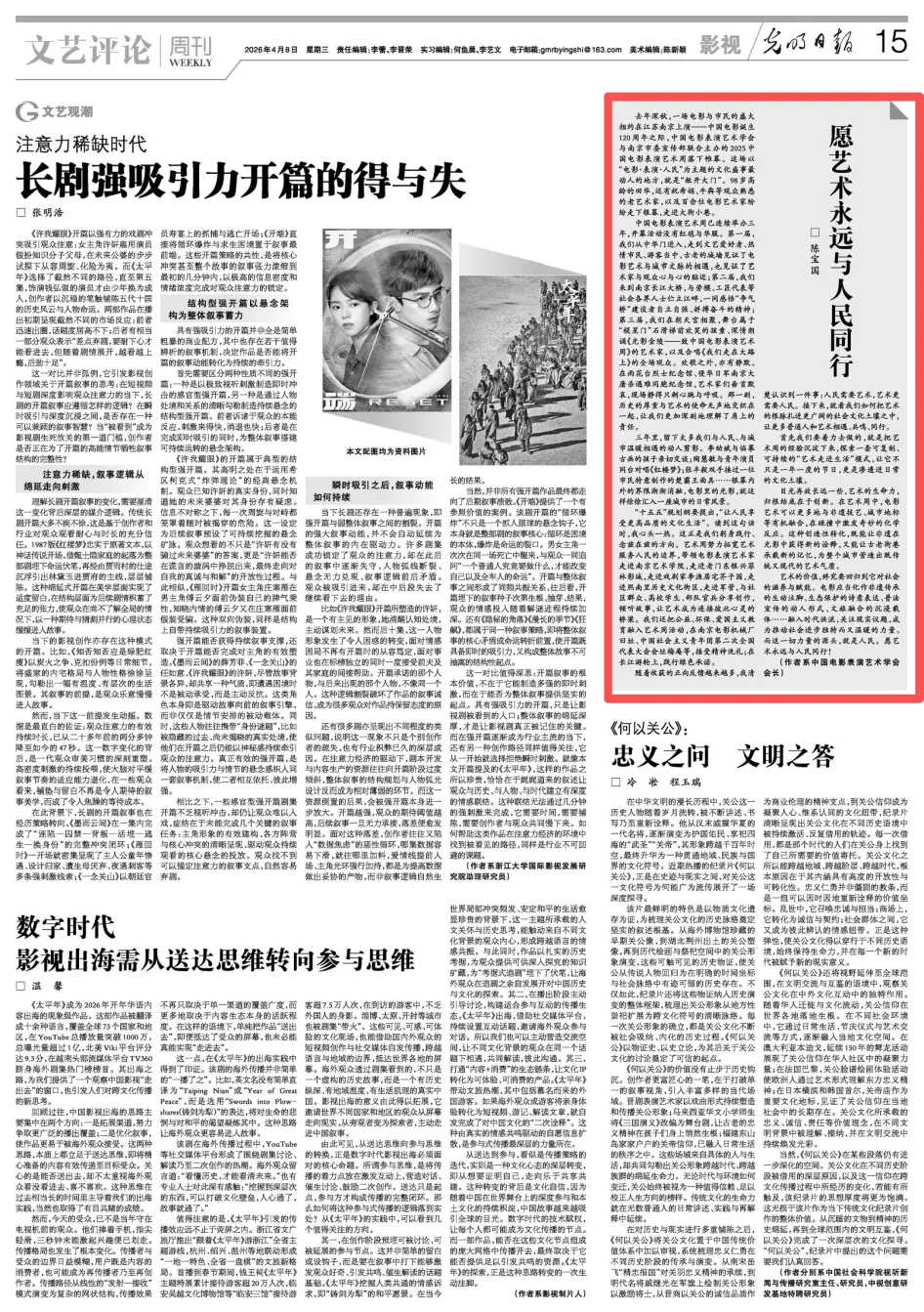 艺术的价值,终究要回归到它对社会的滋养与赋能。电影应当化作非遗传承的生动注脚、生态保护的诗意表达、普法宣传的动人形式、文旅融合的沉浸载体……融入时代洪流,关注现实议题,成为推动社会进步独特而又温暖的力量。而这一切力量的源头,就是人民。愿艺术永远与人民同行!