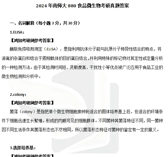 2024年南京师范大学882食品微生物考研真题答案