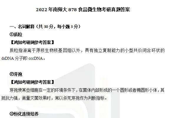 2022年南京师范大学882食品微生物考研真题答案