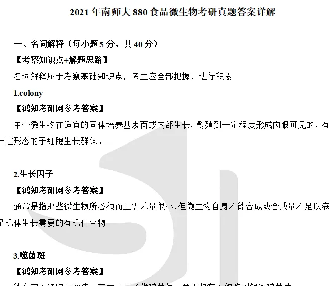 2021年南京师范大学882食品微生物考研真题答案详解