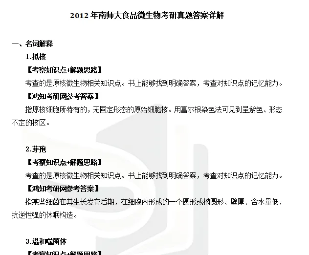 2012年南京师范大学882食品微生物考研真题答案详解