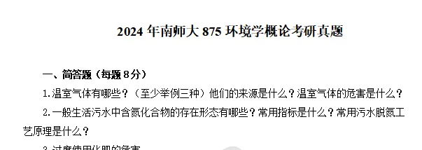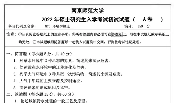 2024年南京师范大学875环境学概论考研真题(回忆版)