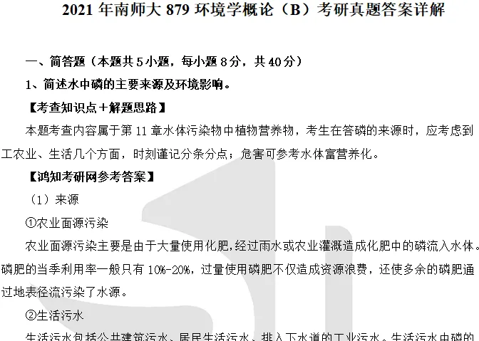 2021年南京师范大学879环境学概论考研真题答案