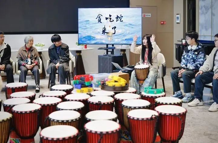 “这是目前比较流行的音乐疗法。非洲鼓高低音分明,能刺激老人的感官。”易丽说。