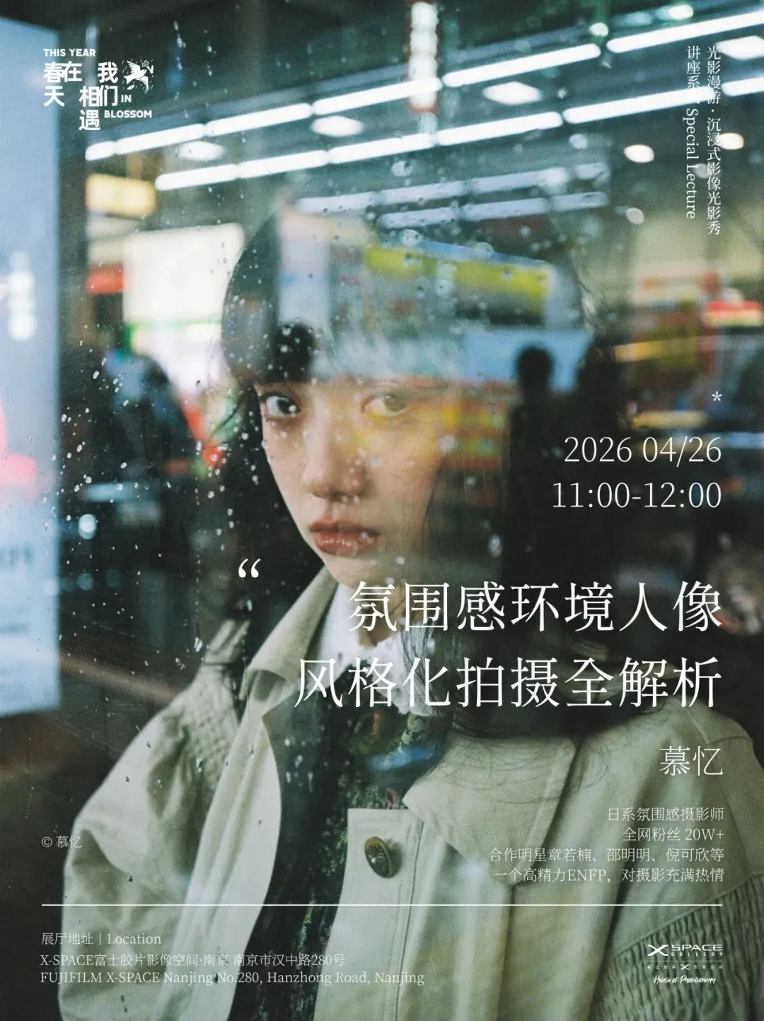 在这堂干货满满的讲座中,摄影师慕忆将带你探索如何拍出兼具日系自然、丰富色彩与生命力的氛围感人像。从“如何形成个人风格”这一核心问题出发,系统拆解从构思到实拍的全流程,让你的照片“活”起来。