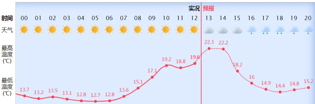 13日的最高气温将降至18℃左右