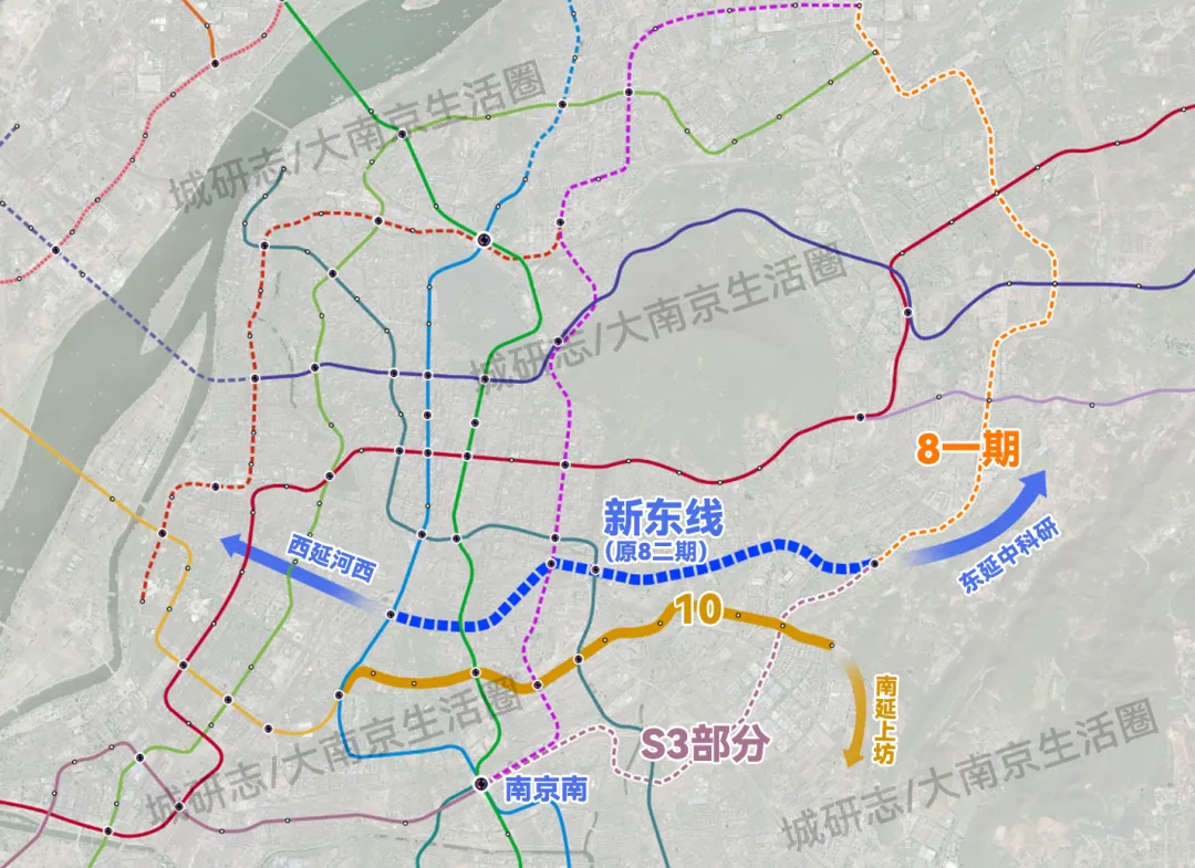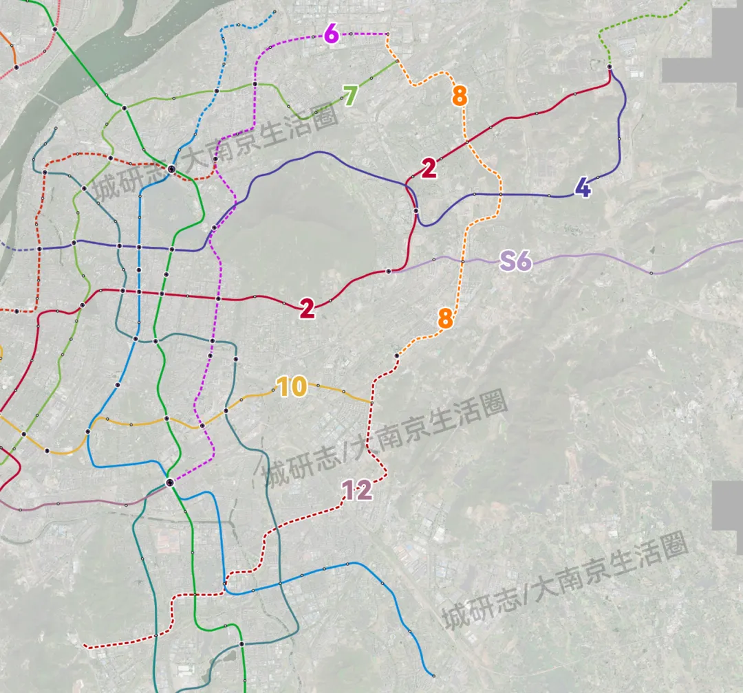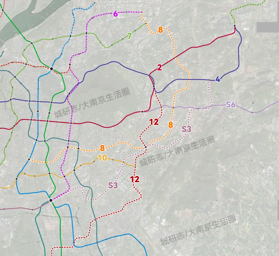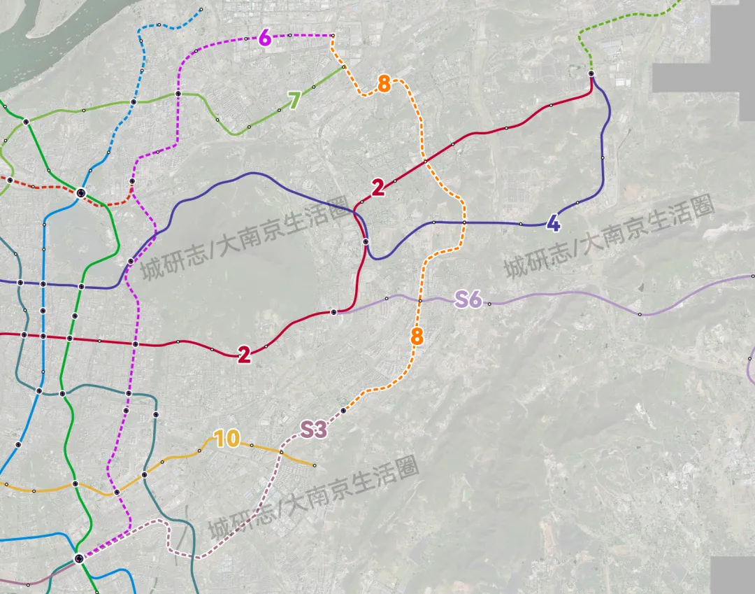 其实比较简单的做法就是将8号线一期和S3东延南站-生态公园的这段合并成一个整体,这样就在紫金山以东构建了一条连通南站、东山、上坊、麒麟、仙林、尧化门、新港的纵贯线,并且也具备环线的特性。