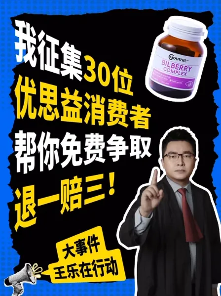 4月7日,江苏法德东恒律师事务所公开征集30名购买过"澳洲优思益"产品的消费者,将为其免费代理诉讼,主张"退一赔三"权益。