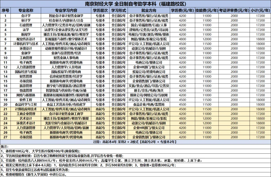 在福建路校区上课以及校外住宿,住宿费6500元左右/年,拥有独立卫浴、空调、洗衣机等。