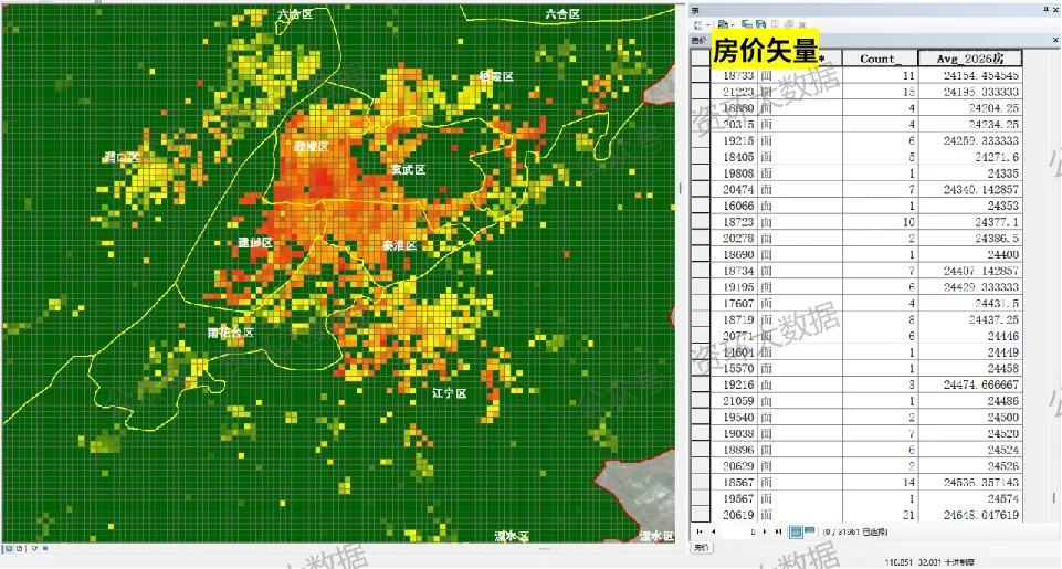 今天我们介绍的是2026年500m分辨率南京城市住宅房价矢量数据集(shp格式),该数据以500m渔网为统一空间基准,集成房价、容积率、绿化率、建筑年代、户数、物业费、停车费及停车位八大核心指标,将宏观城市形态与微观居住品质精确链接,其高精度、多维度的空间数据是揭示城市微观居住品质,及空间分异。