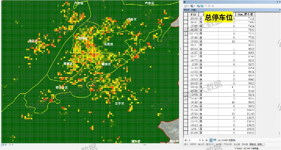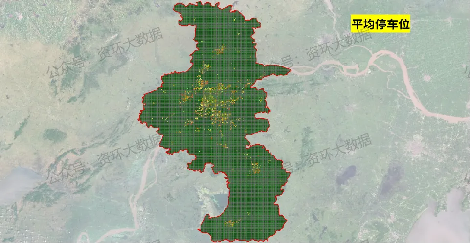 停车位:各渔网单元内住宅区总停车位+平均停车位(单位:个)