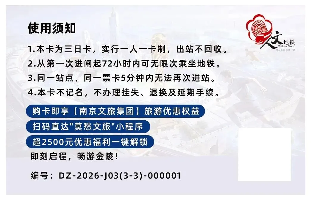 乘客持卡除了可以乘坐地铁以外,还能享受集团提供的额外优惠权益,优惠权益可自行扫卡背面的二维码后获取!
