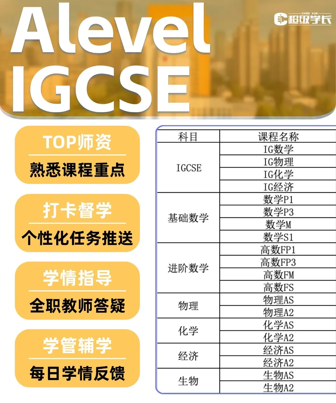 ALEVEL/IGCSE(全课程覆盖,贴合各大考试局考纲)。