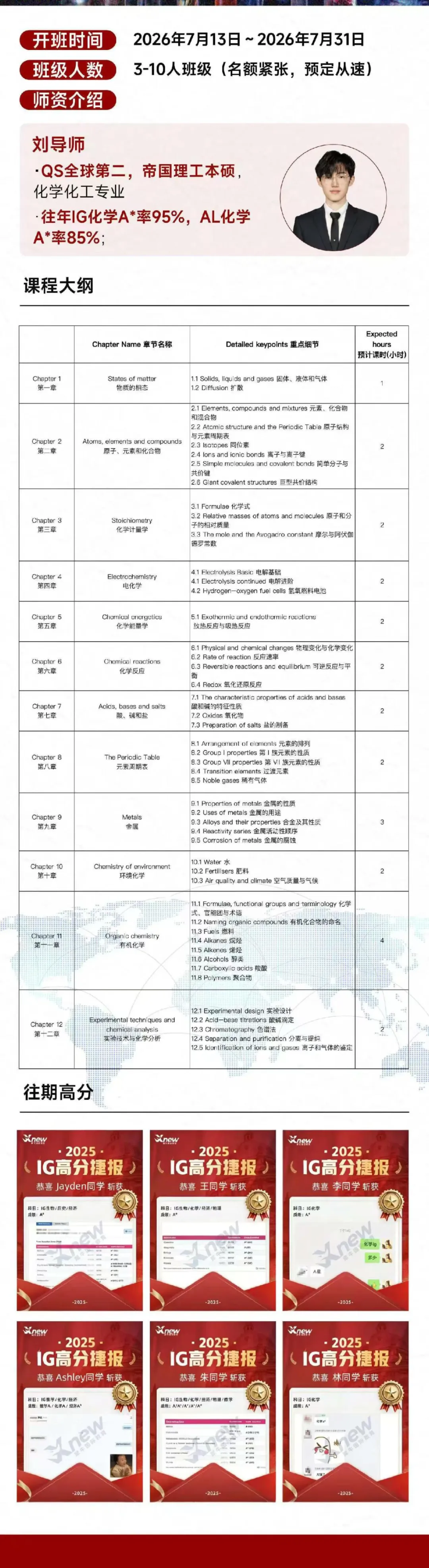 甭担心,这不,南京犀牛教育携手大咖老师开设的IGCSE 化学全新班正式招生,同步覆盖爱德思(Edexcel)与 CIE 两大热门考试局,精准攻克学习痛点,全方位助力学子夯实基础、高效冲 A*!