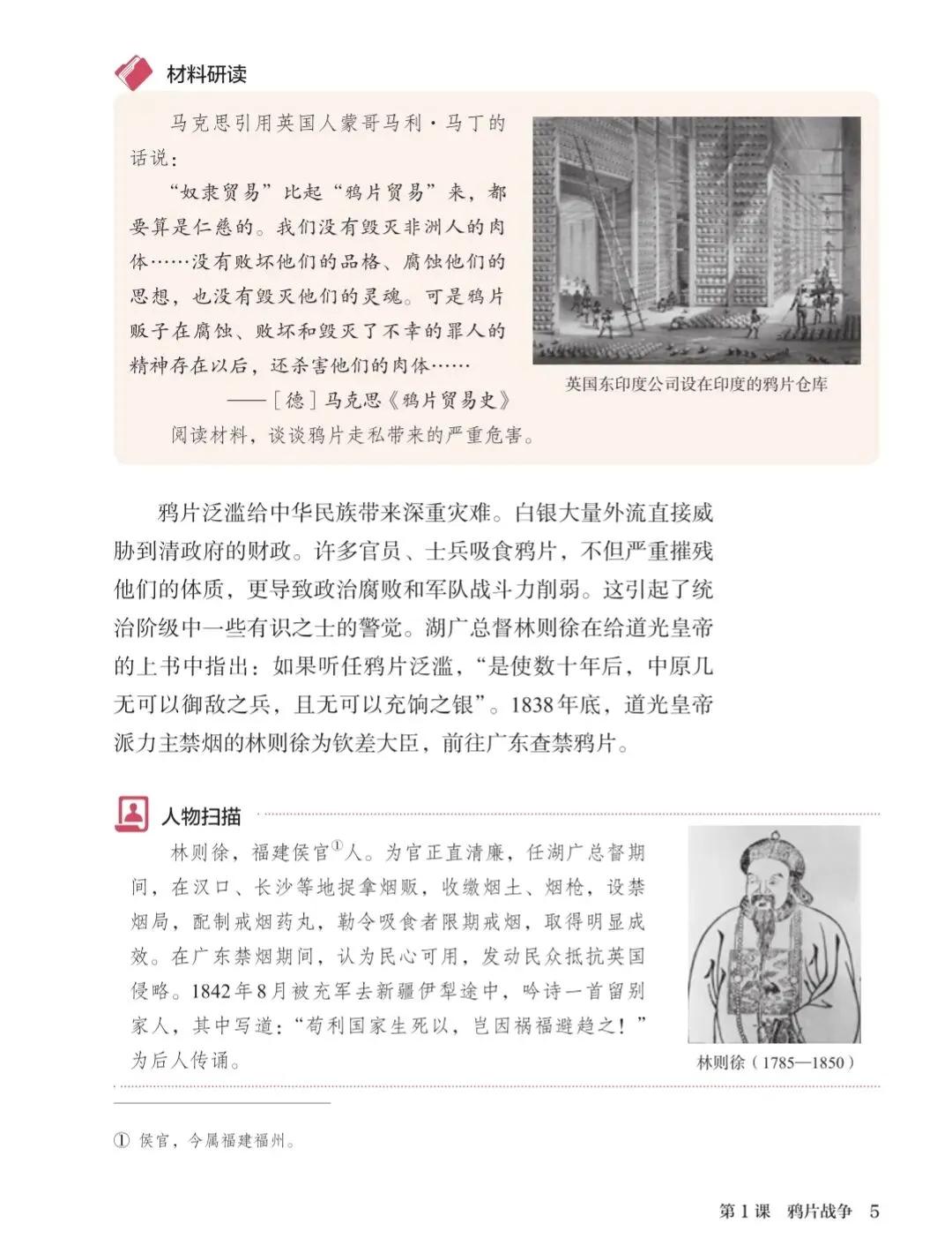 课本上的"人物扫描"栏目,详细介绍了林则徐。