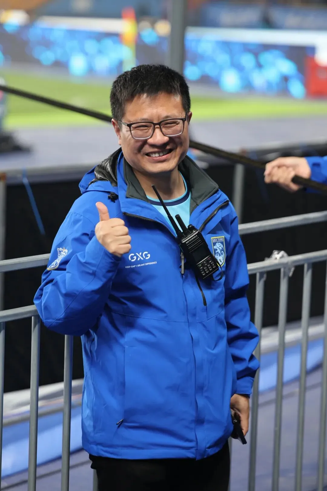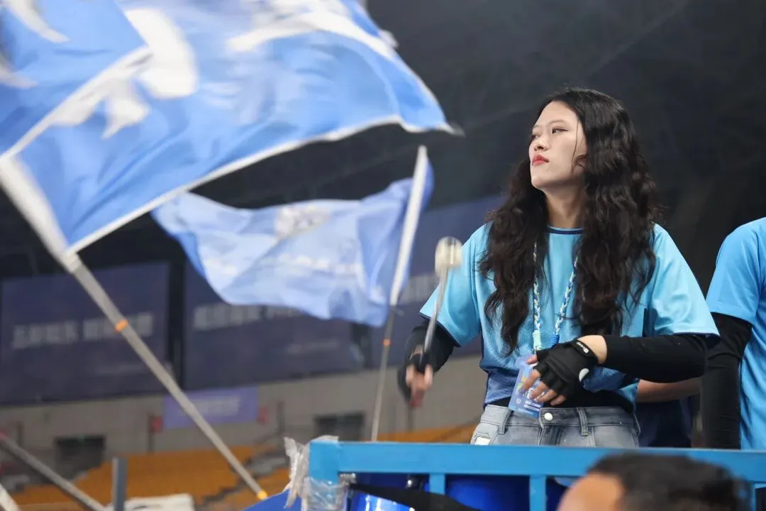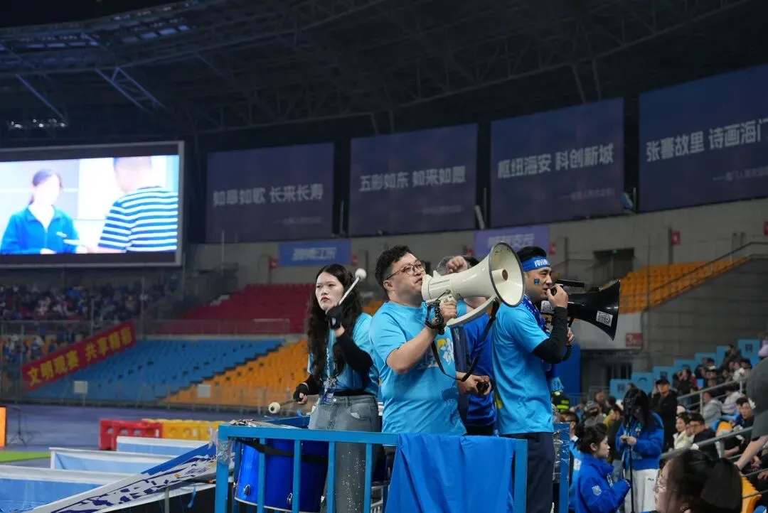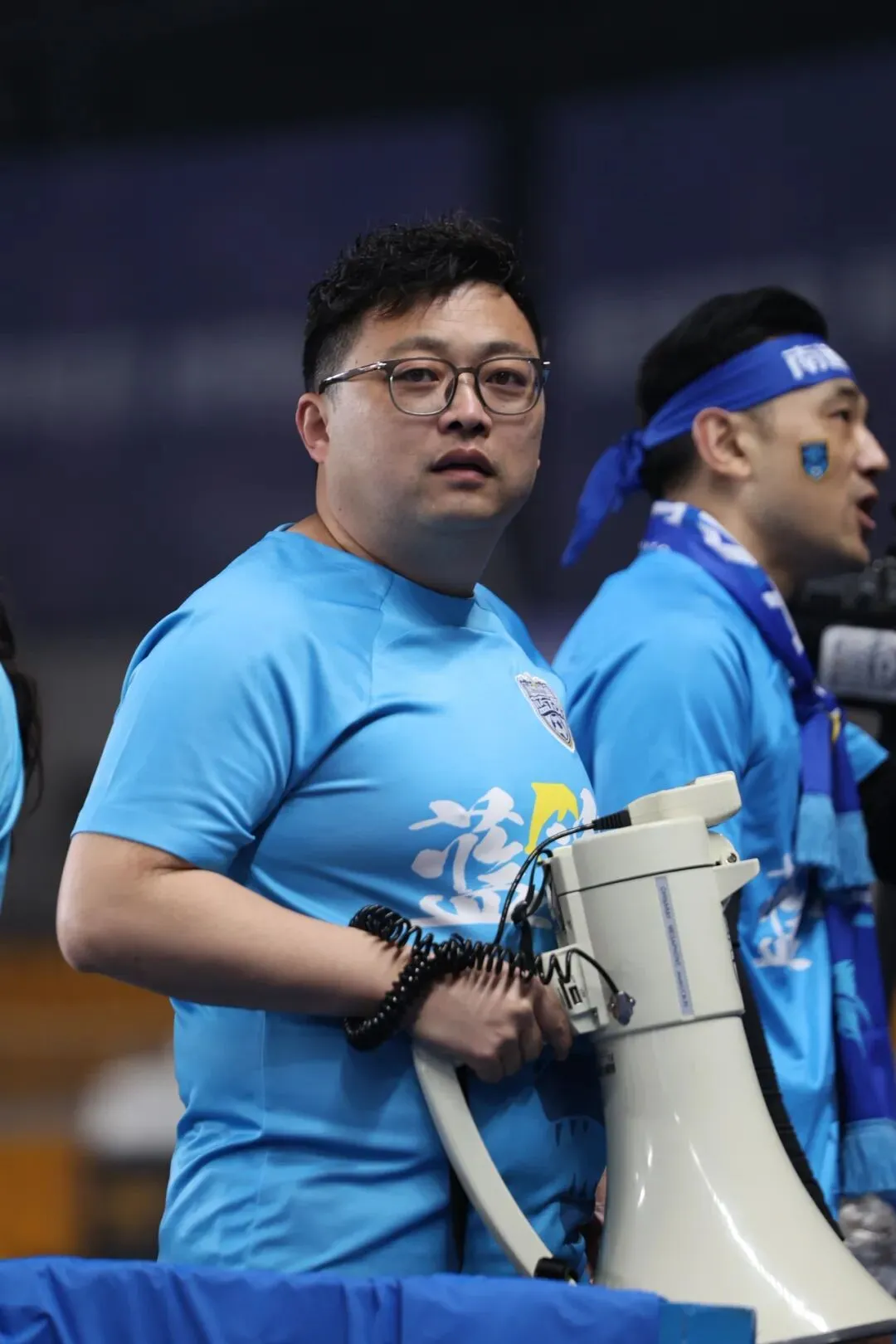 身披江苏、南通支云的蓝色战袍