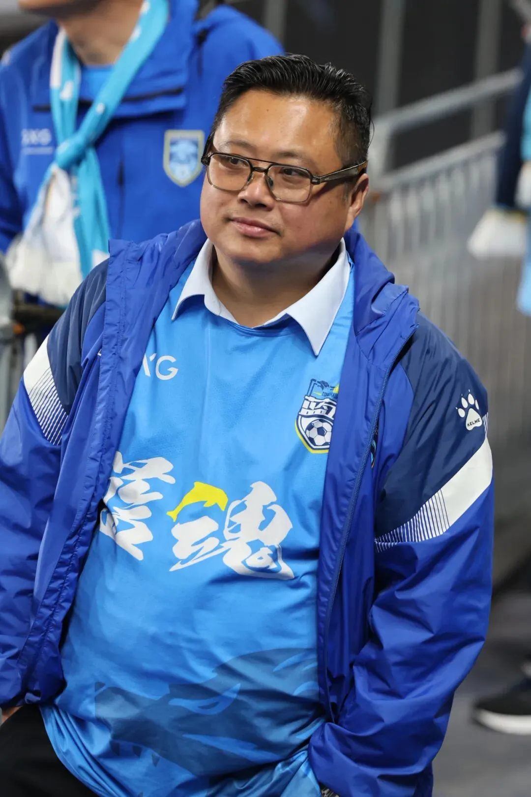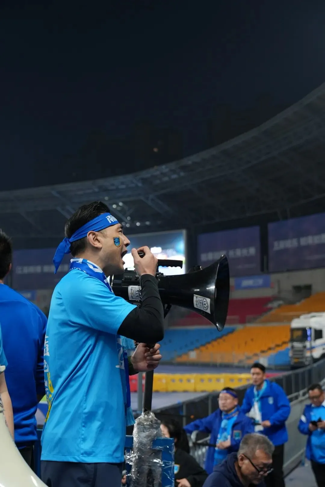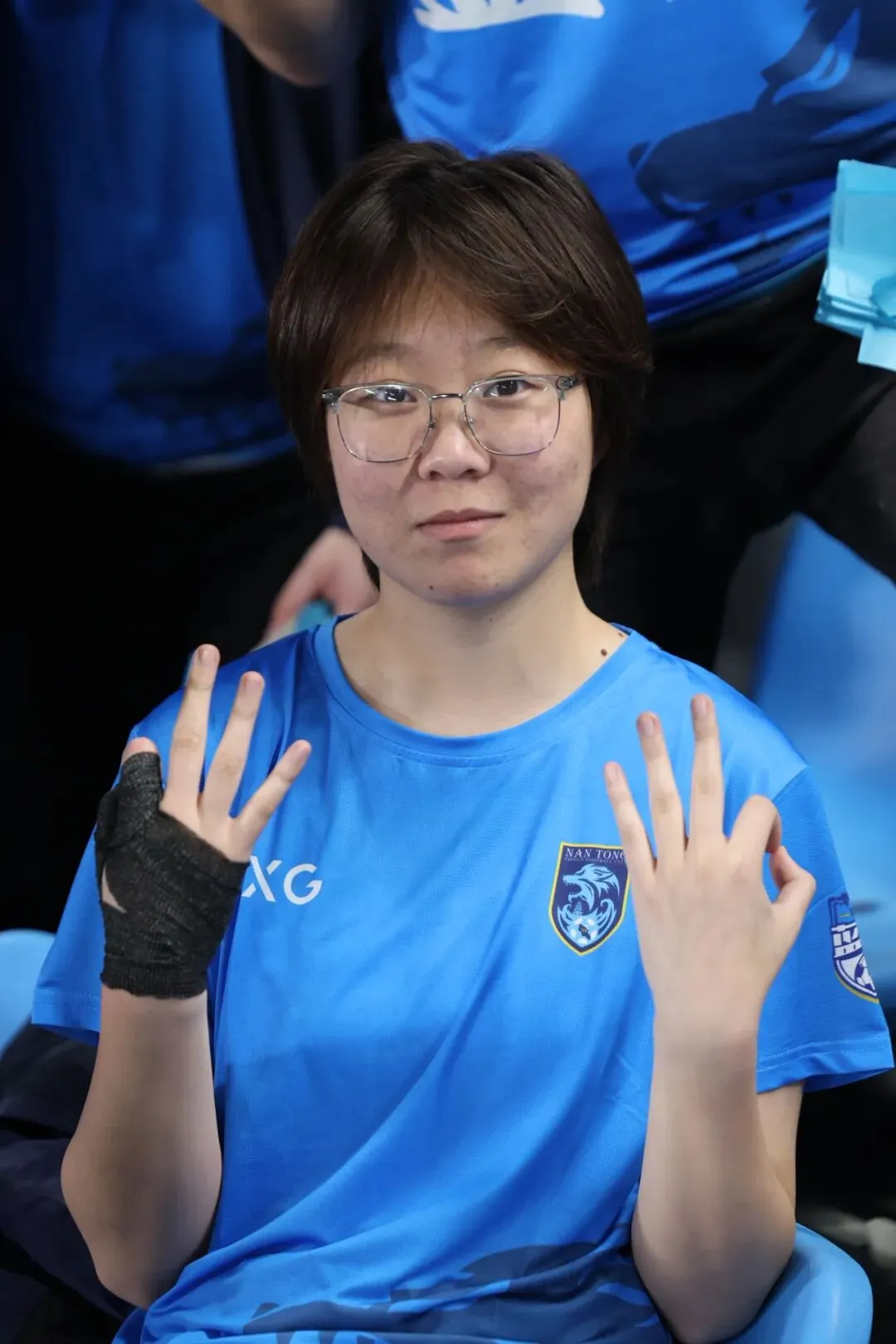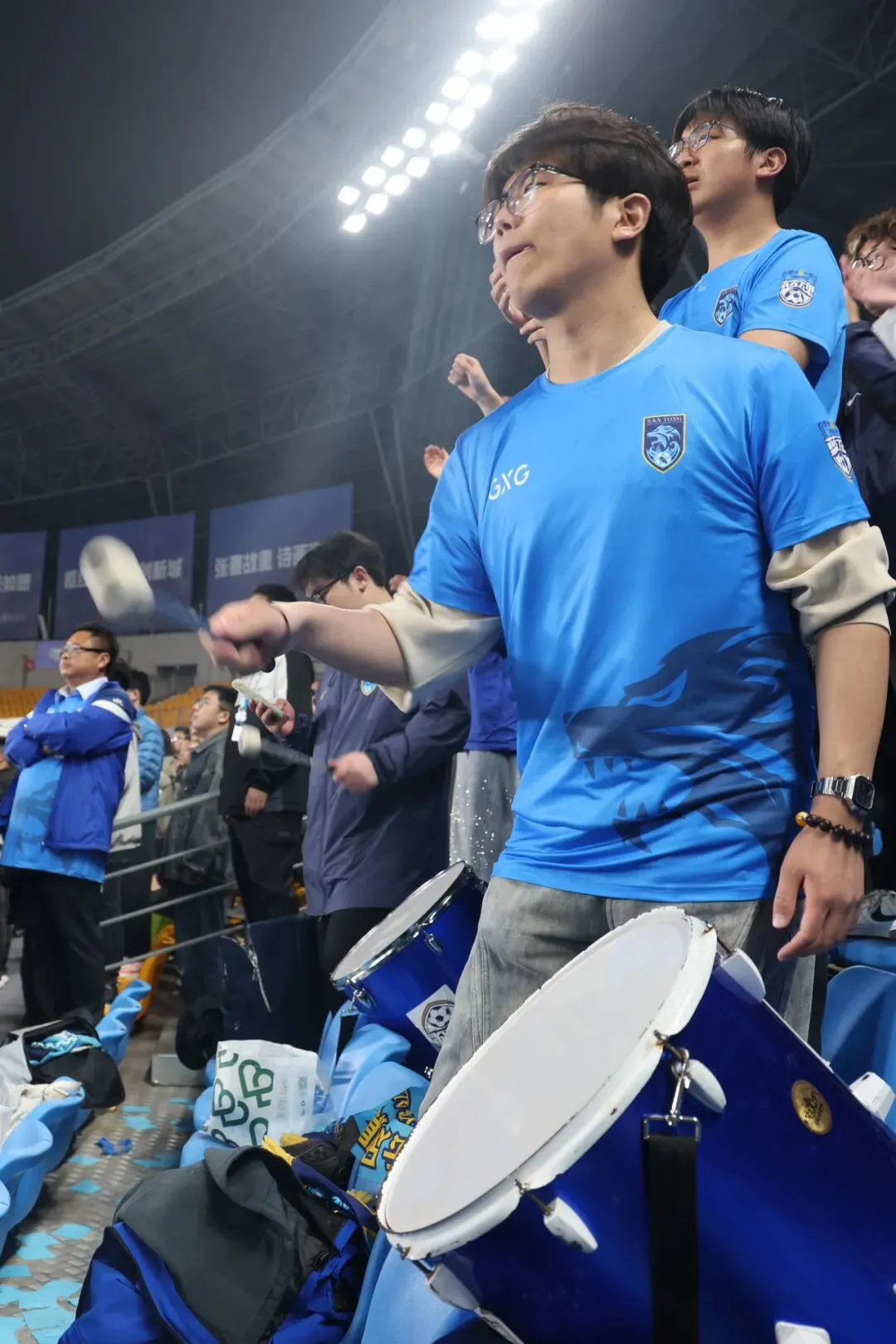 身披江苏、南通支云的蓝色战袍