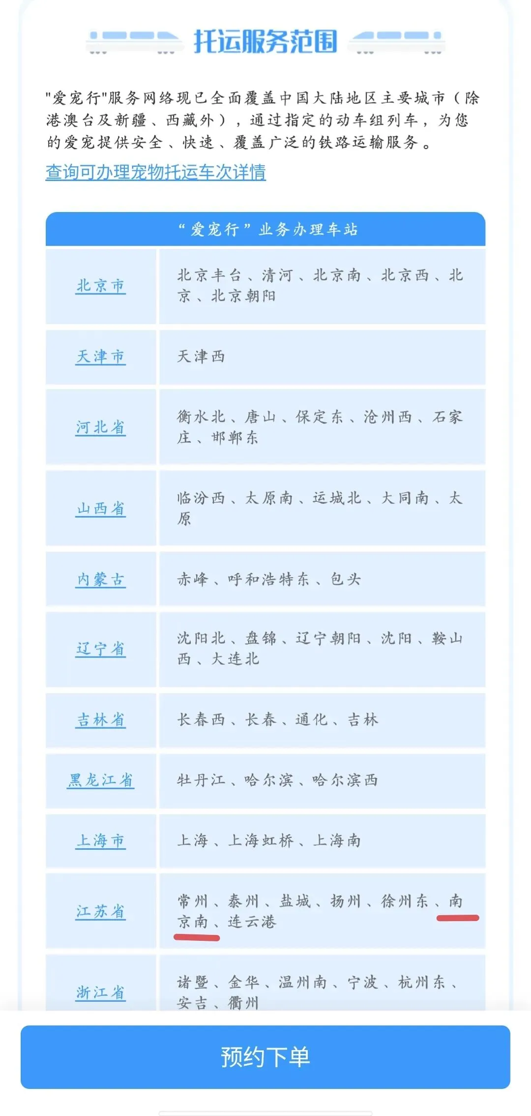 其中,南京南站就在托运服务范围中。