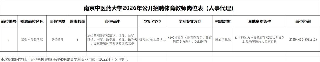 南京中医药大学体育部负责回答此次招聘岗位咨询。