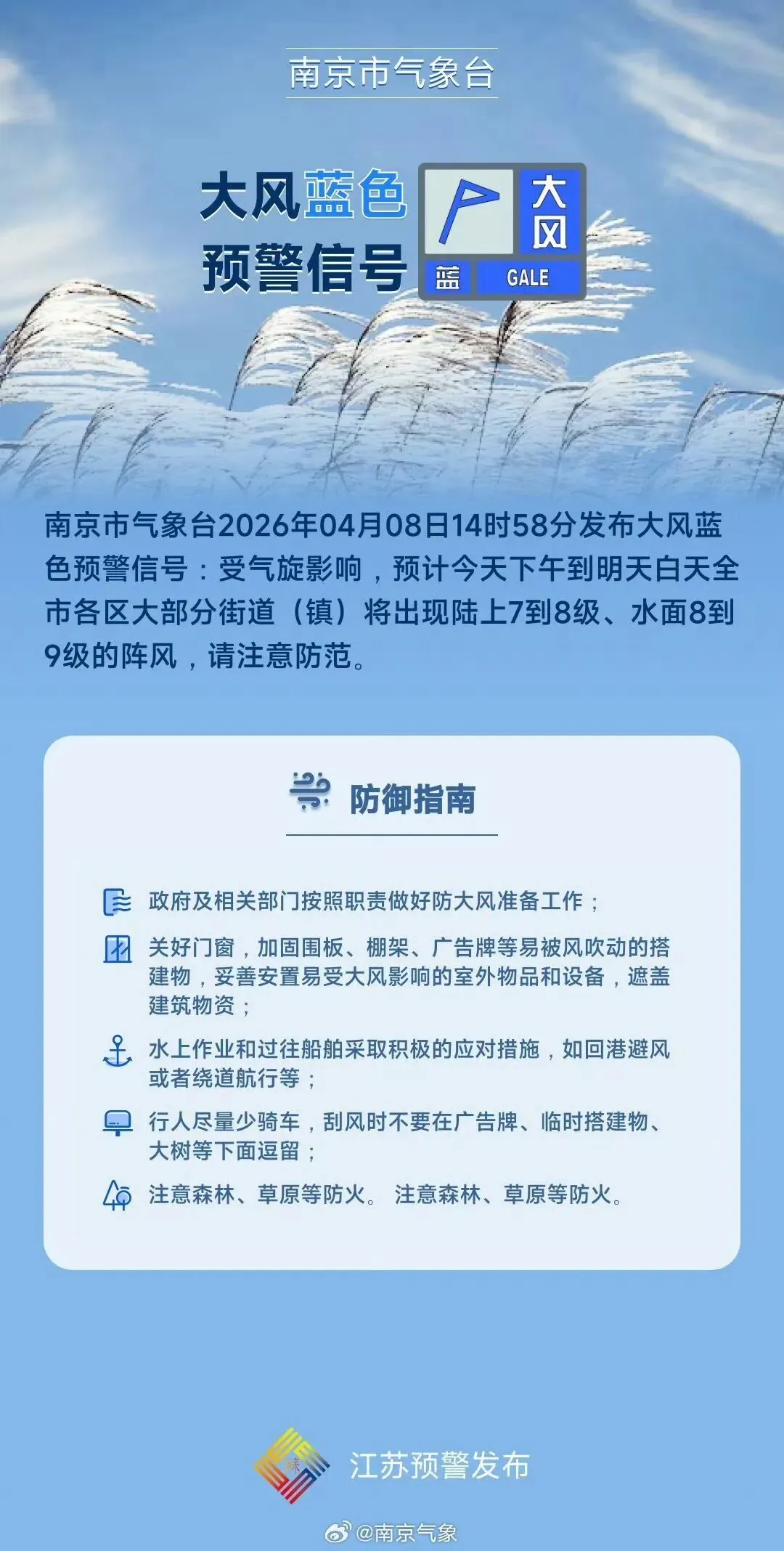 2026年4月8日15时18分,S35阜溧高速盐城段由于恶劣天气,九龙口枢纽至大纵湖双向限速80公里/小时。