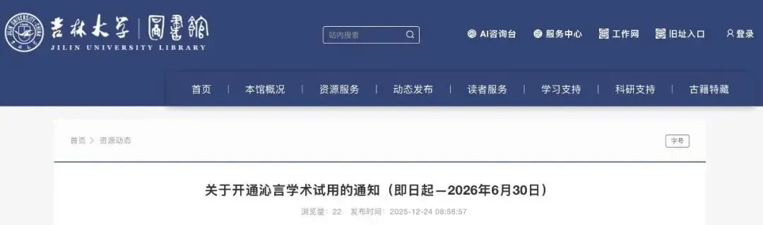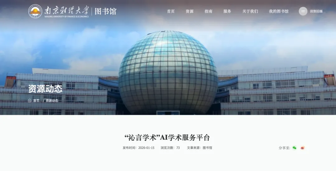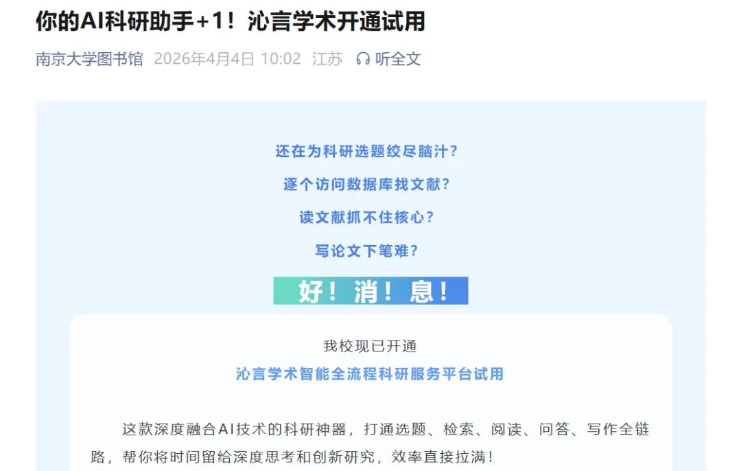 近日,南京大学图书馆正式完成沁言学术智能科研服务平台部署并面向全校师生开放使用。