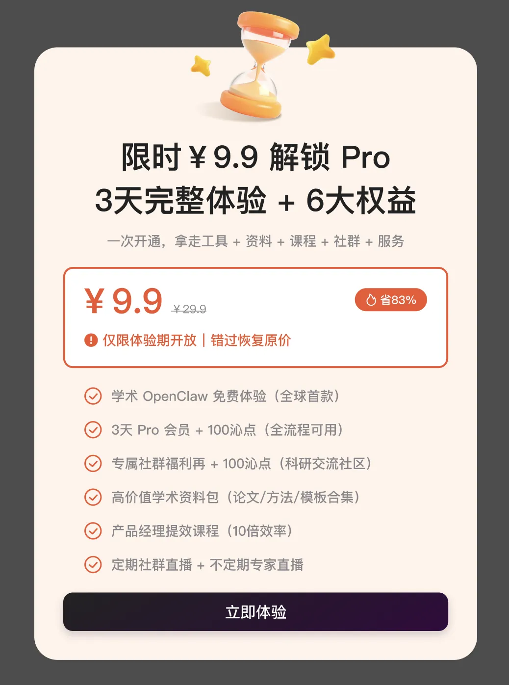 👇仅需9.9元,即可体验3天全球首个“学术龙虾”QinyaClaw!