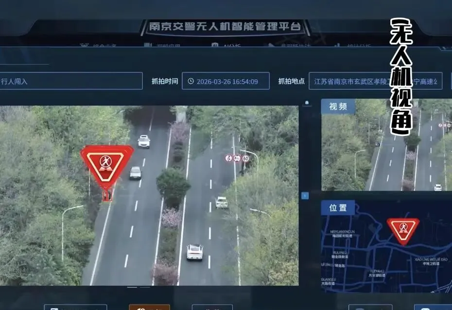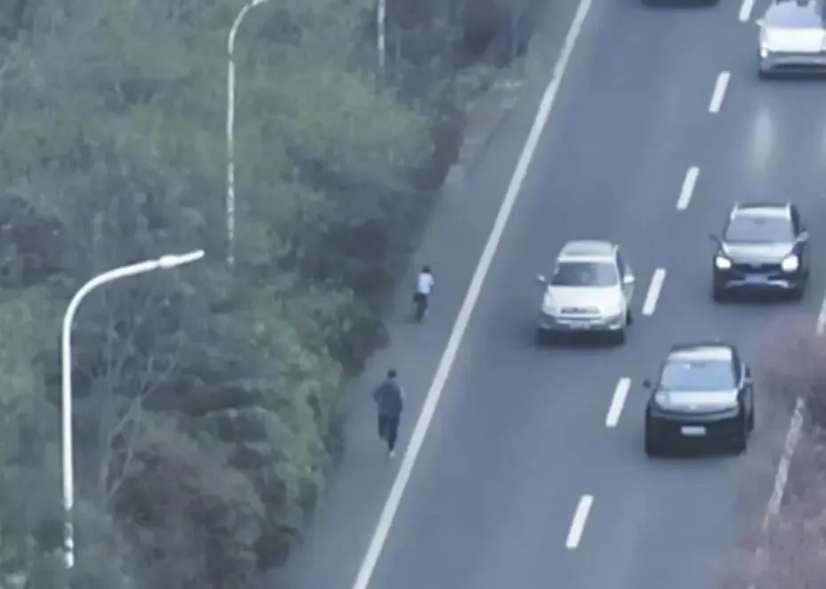当天下午17时,南京交警“金陵飞鹰”无人机正在空中巡逻。后台异常事件检测大模型突然发出警报:高速公路上有一个极小目标正在逆向移动!画面拉近——竟然是一个骑着童车的孩子!