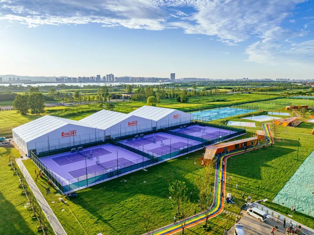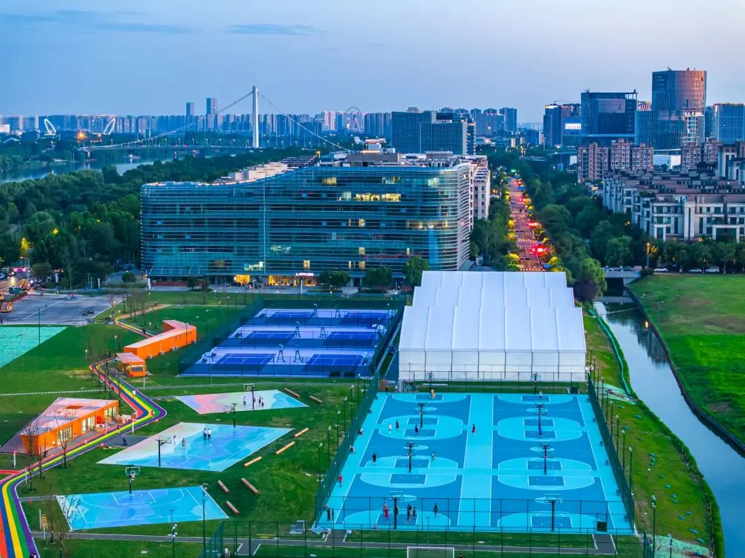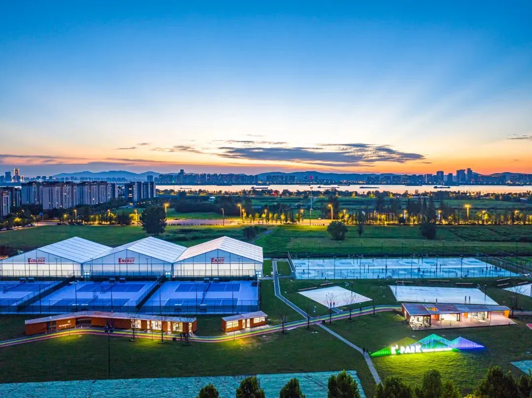 作为创建国家首批约100个高质量户外运动目的地的重要载体,江心洲E³ PARK体育公园的“智慧属性”与专业性藏在细节里:室内网球场配看台,能承接中小型赛事;智能系统让场地预约、运动数据追踪“一键搞定”;连卫生间都分设淋浴区——这是要把“专业”和“便民”揉进每一寸空间。
