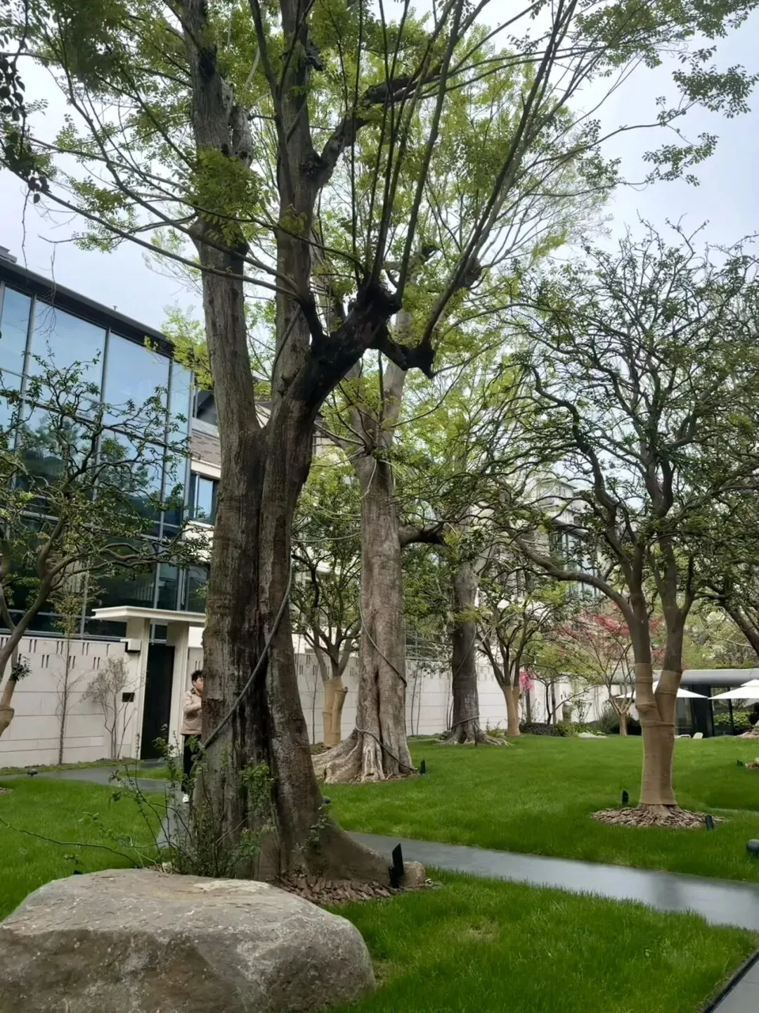 我们极其震撼项目对植物的挑剔,每一棵树都是徐波涛总亲自挑选,很多上百年的古树,一眼看过去很伦敦