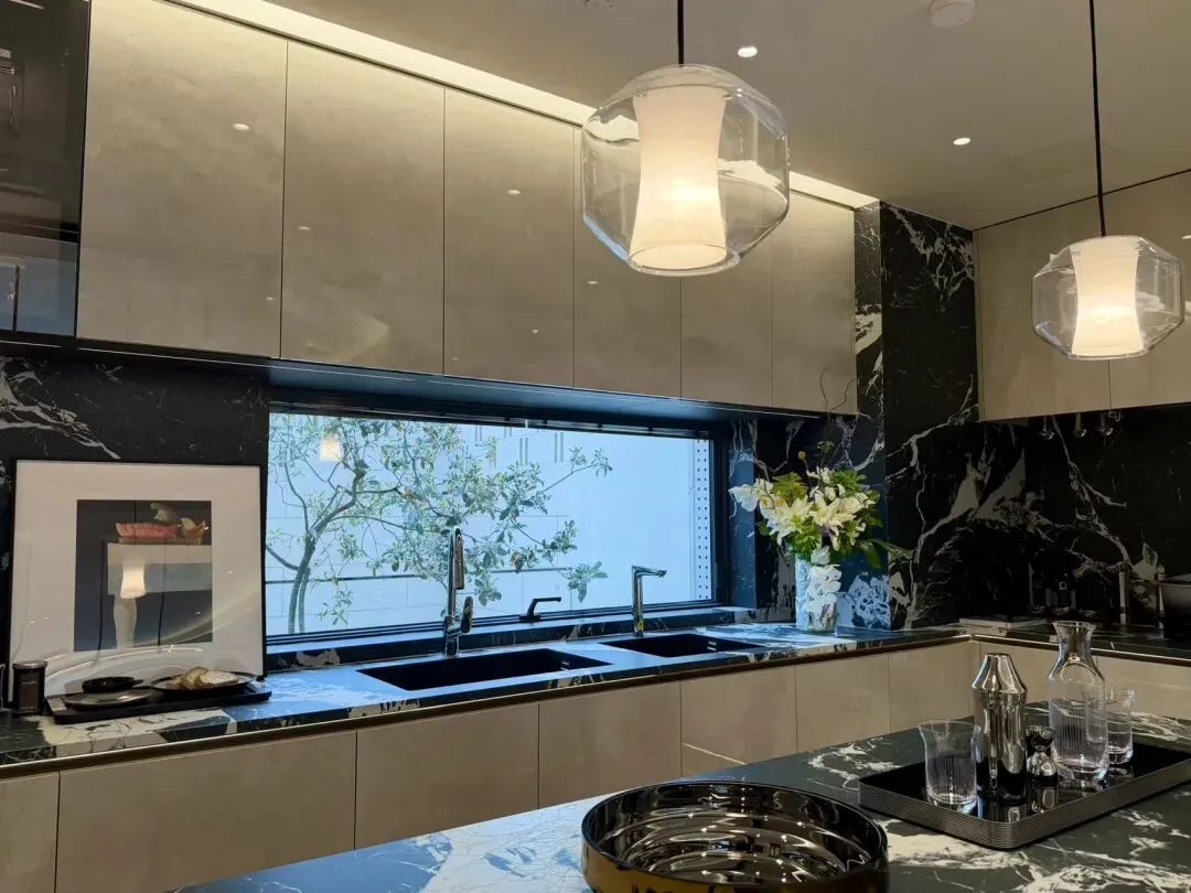 最绝的是,项目的玻璃窗采用ykk的极窄边框,并且采用外挂式工艺,所以你在室内几乎看不到窗户边框,视野一绝