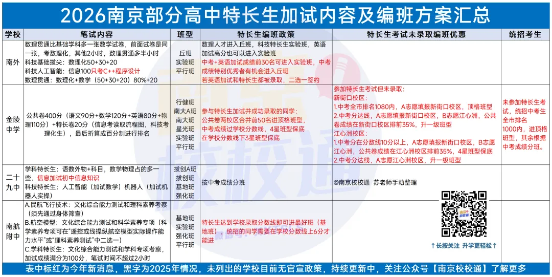 3️⃣苏老师汇总了一下目前流传出来的,今年的特长生加试内容、编班优惠策略,供大家参考