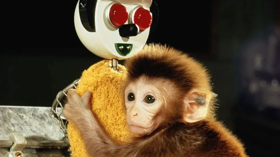 ▲1958年,哈里·哈洛(Harry F. Harlow)选择与人类基因有94%相似度的恒河猴进行了心理学最著名的一场“代母实验”