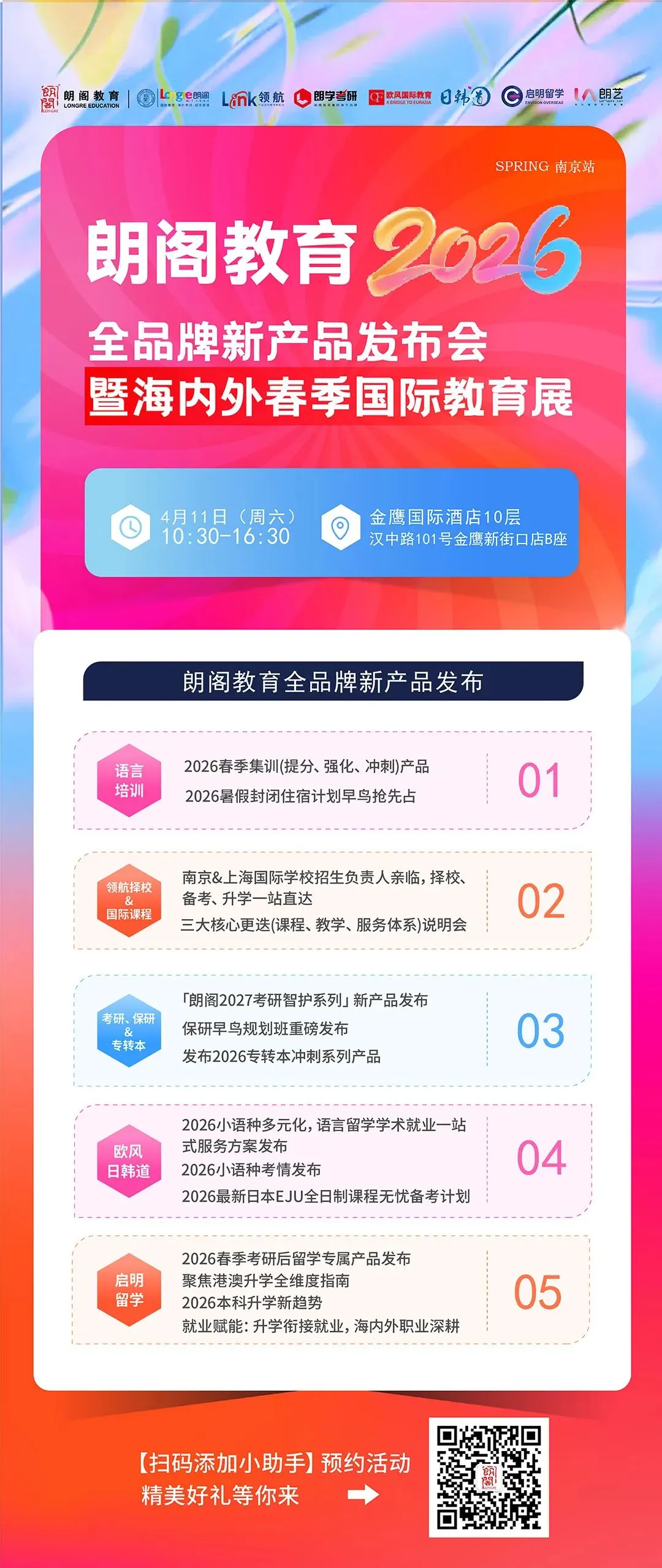 2026年升学季即将开启,无论是专转本冲刺、考研保研规划、留学申请,还是就业竞争力提升,南京朗阁全品牌教育展为你提供适配+落地的解决方案!