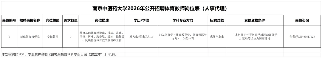 南京中医药大学体育部负责回答此次招聘岗位咨询。
