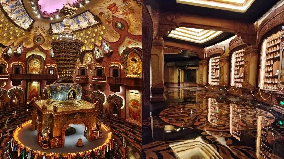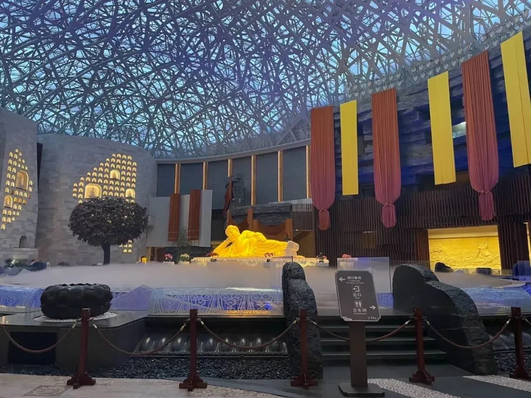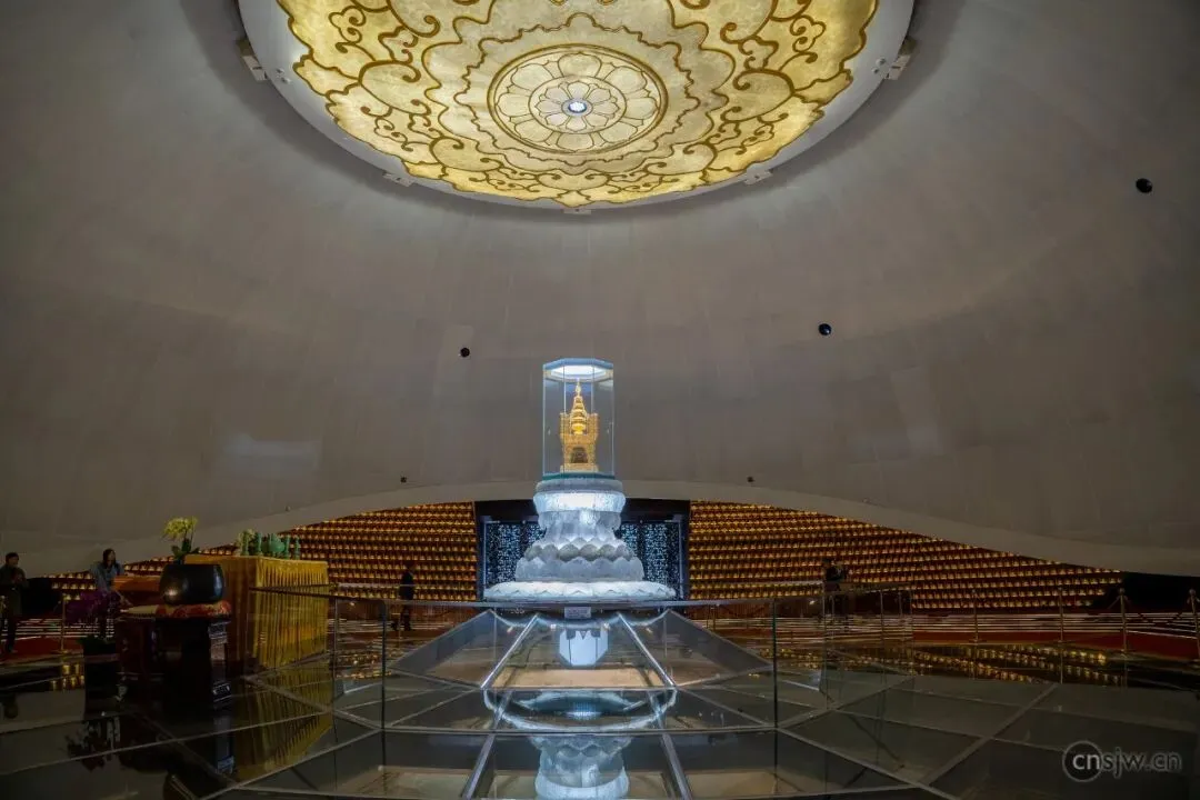 佛顶宫以佛祖顶骨舍利供奉为主题,分为大穹顶和小穹顶两个部分,寓意外供养和内供养。佛顶宫利用原有矿坑建地宫,地下六层,地上三层,很是庄严气派。近年,释迦牟尼佛顶骨舍利将在牛首山被长期供奉,游客可于特殊佛教节日前往佛顶宫瞻礼。