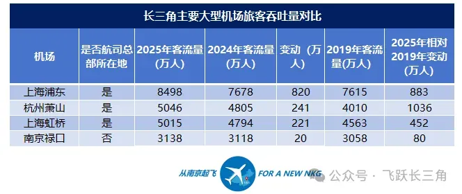 今天,借着这份最新出炉的南京“十五五规划”,我想认真聊聊禄口机场。如果你问我,普通南京人对禄口机场的感受是什么,我会毫不犹豫地说:国际航线不多。截至目前,我观察了一下,禄口机场真正意义上的定期国际直飞客运航班,满打满算,好像也就就12条主力直飞航线。目前直飞欧洲的,只有两根独苗。一条是东航2025年刚刚新开的巴黎航线,虽然用的是波音777宽体大客机,一周一班往返。另一条是勒奥斯航空,飞往米兰,一周两班。飞大洋洲的靠东航的悉尼和墨尔本撑起来,都是一周三班的A330宽体机。剩下的,基本都是靠窄体机飞的亚洲(尤其东南亚)周边游,每天最高频的新加坡、首尔、东京、大阪、曼谷、胡志明市、吉隆坡,外加厦航刚开通的雅加达。你没看错,就这12个城市,构成了目前南京飞向世界的主力阵容。要知道,在2019年,禄口曾开通30余条国际及地区航线,与之对比,现在的国际航班数确实不多。与其他城市对比,上海浦东的国际航线覆盖全球所有主要城市。杭州萧山机场,日韩、东南亚、欧美航线也比较全。以国内航线为主,国际航班只能说“还有很大提升空间”。因为一座机场的能级与国际化程度,会影响一座城市的发展上限。在当下,机场早就不是简单的交通中转站,它是城市争夺高端产业的“引擎”。你想想,那些跨国公司总部、大型金融机构、高端服务业,为什么非要扎堆在核心城市的CBD?因为跨国公司高管、商务人员、风投大佬、顶级专家,他们对时间极度敏感。如果一个城市没有直飞全世界重要城市的高频航班,他们飞一趟还要去其他城市折腾许久,人家凭什么有很强的意愿把中国总部设在这里?不仅对CBD和总部经济有影响,对城市高端制造业也一样重要。江苏是制造业大省,南京及周边城市的制造业非常发达。如果家门口的机场没有极致便利性,高端产业就会“用脚投票”,慢慢向那些拥有超级航空枢纽的城市转移。长三角的航空博弈,表面抢的是客流,背后抢的其实是企业决策权和城市的未来。上海浦东是全球最繁忙机场之一,2024年旅客吞吐量7679万人次,2025年同比增长10.7%,年旅客吞吐量为8499.5 万人次。航空公司在长三角布局国际航线,首选永远是上海,市场更大,旅客更多,收益更稳定,南京禄口机场自然就成了次选。而很多旅客的逻辑也简单,宁愿多花一两个小时去上海,也要坐直飞,不愿意在南京“中转联程”,有点麻烦。这就形成了一个恶性循环:国际航班少→商务旅客流失→航空公司不愿增加国际航线→国际航班更少。在航空业,枢纽机场的国际航线数量是“马太效应”最强的指标。说到这里,不得不提杭州萧山机场,这是禄口机场的竞争对手之一。2017年,南京禄口旅客吞吐量2582万,而同期的杭州萧山是3557万。两座长三角核心城市的机场,在那时就已经拉开了近千万的差距。到了2025年,杭州5045万,南京3137万,差距扩大到了近1900万人次。2022年,杭州萧山机场三期T4航站楼投入使用,新增大量容量和现代化设施,设计容量5000万人次。与此同时,还有南京、杭州两个城市的面积、人口上的区别,杭州的体量优势比较大。产业方面,杭州杭州数字经济蓬勃发展,阿里巴巴、网易等互联网巨头带来了大量商务出行需求,国际航线也随之增加。南京临空经济示范区管委会就曾答复市政协提案,相比杭州、郑州、鄂州等城市均由省市共同承担航线补贴资金的模式,南京禄口机场航空货运航线补贴由南京市单独出资,且总量差距较大。2024年南京市可用航线补贴资金约1.5亿元,拟向省、市政府积极争取政策支持,支撑南京禄口机场国际航空货运枢纽建设。(官方信息来源:https://www.nanjing.gov.cn/xxgkn/jytabljggk/2024njytabl/shizxta/202411/t20241120_5013800.html)机场航站楼,是你去禄口坐飞机时进的那个大楼,目前禄口有T1和T2两座航站楼,加起来42万㎡。城市候机楼,是机场在城市各处设置的“前哨站”,你可以在那里办值机、托运行李,然后坐大巴直达机场。3月份刚启用的第42座城市候机楼,就在南京紫金山科技城,专门服务国际高层次人才的空铁联运需求。而禄口机场这42座候机楼,分布在苏皖两省,南京主城各区、苏州、无锡、常州、扬州、淮安,还有安徽的马鞍山、芜湖、合肥……但这张网背后,其实藏着一种“流量焦虑”,禄口机场在拼命抢客源。为什么要这么拼呢?4F级国际机场,这是民用机场的最高等级,全中国不到20个。两条跑道,各3600米,可以起降A380这种全球最大的客机,141个机位,63个廊桥机位,配置不可谓不高。网上经常说禄口有“5000万的容量”,以为现在才3100多万,还空得很。这笔账是怎么算出来的?这就要提一段禄口T1航站楼改造升级史了。1997年老T1刚通航时,设计容量只有1200万人次。到了2020年,T1完成了一期改造,主楼翻新+新建北指廊。数字没变,官方指标还是1200万,但其实暗藏玄机。它把行李、安检系统全部按未来1800万的需求打好了底子。直到2022年,T1二期改造全面完成,“双楼合璧”。这时候,T1的真正设计容量才被抬升到了1800万人次。加上2014年新建时就设定为1800万的T2航站楼,两座楼加在一起,雷打不动的标准“设计容量”就是3600万人次。那是官方通过深挖潜力、优化流程、挤压空间,算出来的“保障能力”。换句话说,一套房子原本设计住3个人,加上两张高低床,也能睡5个人,但体验可想而知。- 2019年,禄口旅客吞吐量3058万,全国排名第11位;