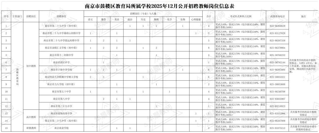 原公告:50名编制!南京市鼓楼区教育局所属学校2025年12月公开招聘教师公告