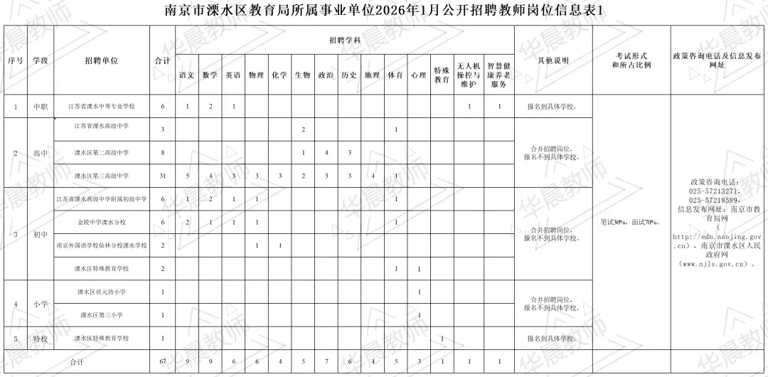 原公告:南京教师招聘||71名编制!南京市溧水区教育局所属事业单位2026年1月公开招聘教师公告