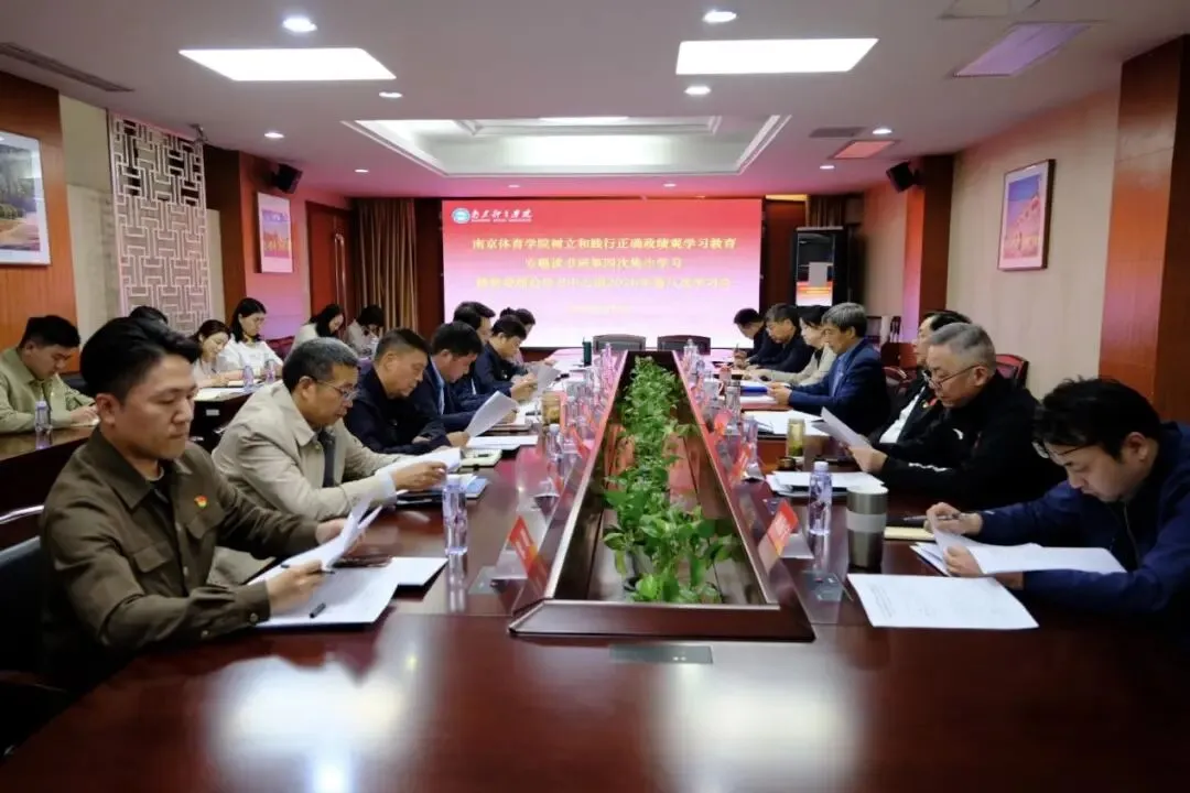 南京体育学院树立和践行正确政绩观学习教育专班成员参加学习会。