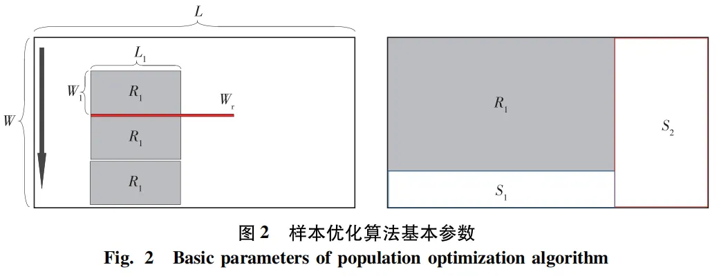 1)参数设置并建立数学模型。首先,设定矩形板材区域的所有基本参数,包括板材的尺寸、形状等参数。构建数学模型来描述这些参数与排样效果之间的关系,确保所有变量都被恰当地考虑并能够反映在最终的排样结果中。